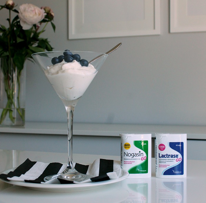 Sitten päästäänkin juhlien olennaisimpaan osaan, eli syömiseen. Koostuipa juhannusateria sitten grilliherkuista ja mansikkakakuista tai festareiden päivänverran pannulla pyöritellyistä makkaraperunoista, on mahanpurut yleensä taattu jossain vaiheessa iltaa. Puhumattakaan siitä, jos sattuu olemaan laktoosi-intolerantikko, niinkuin minä. Eipä ole ihan yksi tai kaki kertaa, kun on tullut uskoneeksi juhlienjärjestäjän vakuutteluja tarjoilujen laktoosittomuudesta, ja sitten onkin saanut ähistellä pinkeänä pallona pömpöttävän mahan kanssa jossain nurkassa loppuillan. Vermanin survival-kitistä löytyi ratkaisu myös tähän.